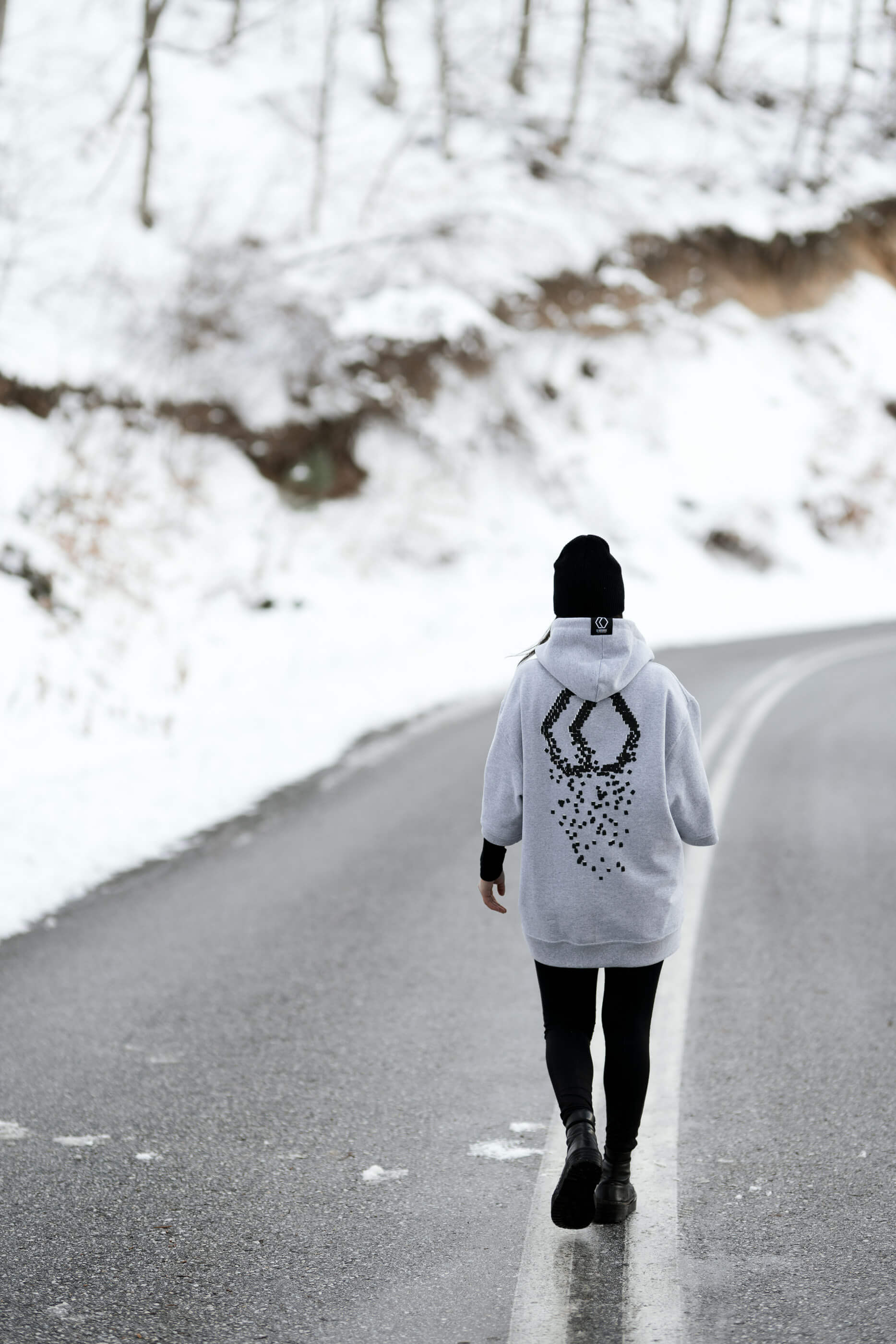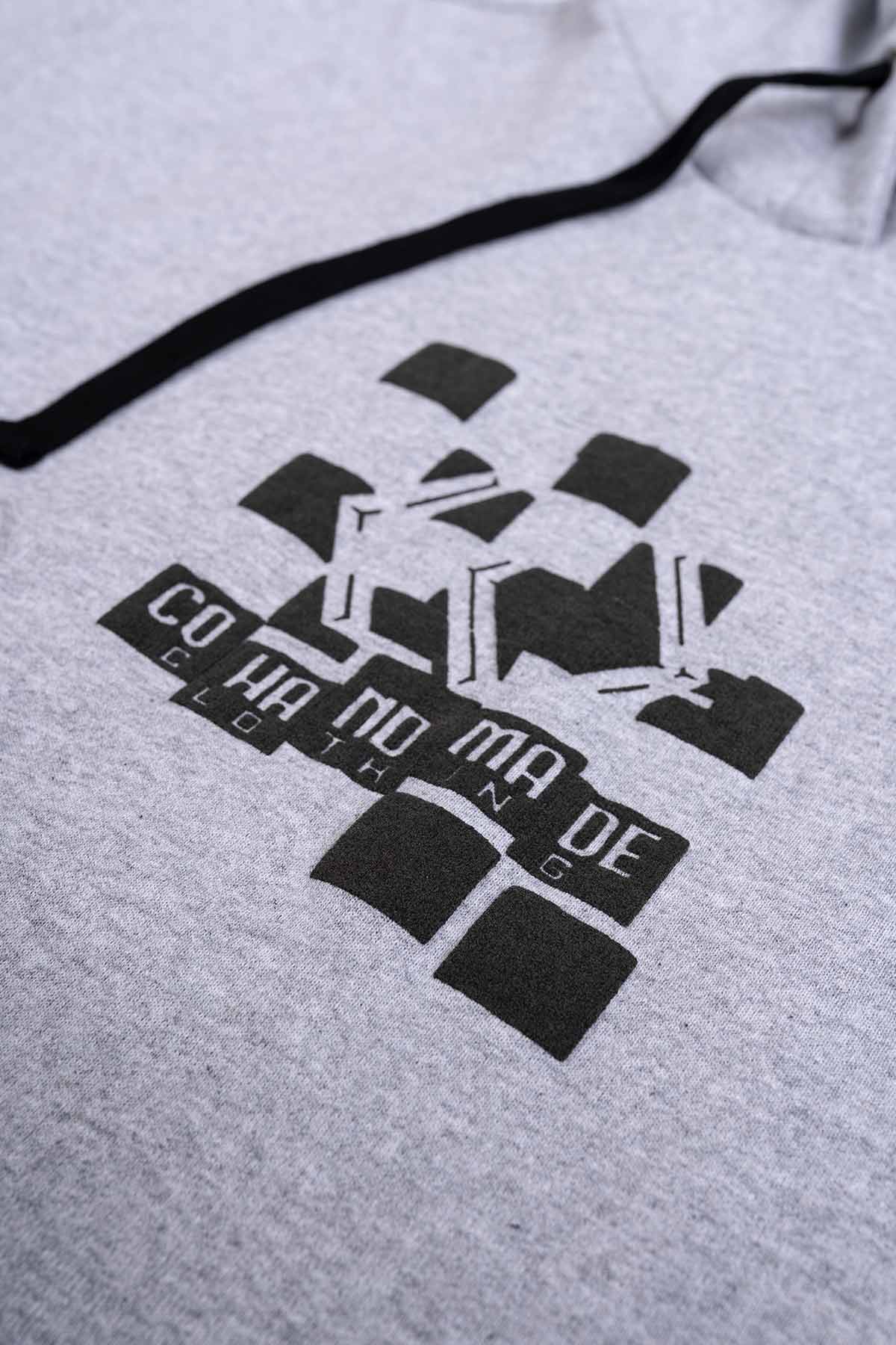 Φούτερ ελληνικής παραγωγής, φτιαγμένο από 100% ανακυκλωμένο βαμβάκι, σε γκρι χρώμα και oversized γραμμή, με κουκούλα και μανίκια στο ύψος του αγκώνα. Διαθέτει τσέπες τύπου καγκουρώ και ριπ ύφανση στο κάτω μέρος και στο τελείωμα των μανικιών για άνετη εφαρμογή. Το hoodie διακοσμείται από μία limited edition στάμπα στο θώρακα με την επωνυμία της CO Handmade Clothing. Η κουκούλα διαθέτει μαύρο tab με το λογότυπο της εταιρίας, όπως και το τελείωμα των μανικιών. Η πλάτη διακοσμείται από γκρι ανάγλυφο λογότυπο της CO Handmade Clothing, σε 3D ψηφιδωτό pattern.